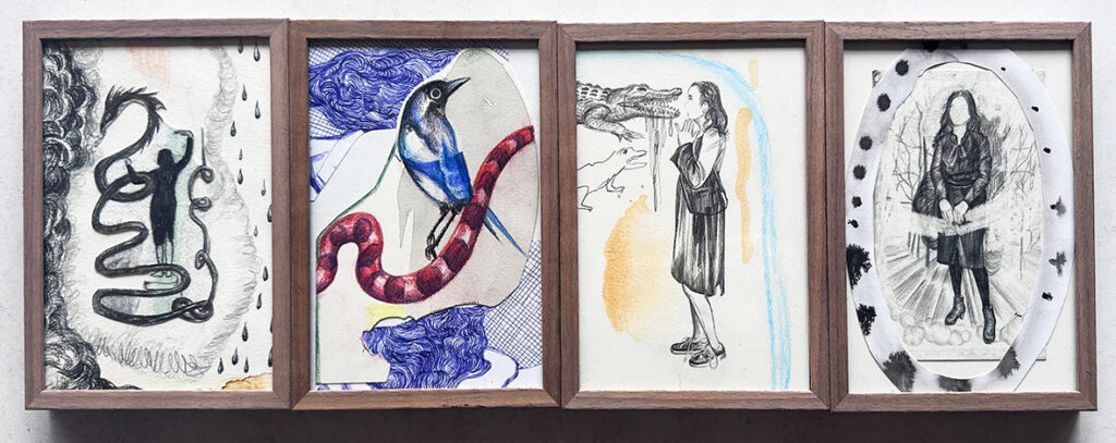I see my love for drawing figurative and natural elements and stories in the drawings of the Custodia Foundation collection. During the working period at Atelier Néerlandais in April, I worked on a collection of ‘miniature drawings’ that took up residence in an antique art nouveau album I found at the flea market. The album is reminiscent of the beautiful folders of drawings Frits Lugt collected for the Custudia Foundation collection.